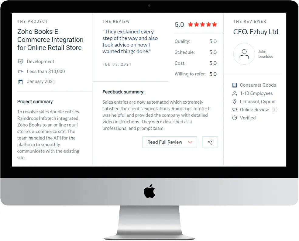 We are proud of how we drive the digital revolution across various industry verticals. Our company values feedback from our clients. Without them, we wouldn’t be where we are today. Take a look at a recent 5-star review one of our clients left on Clutch below: